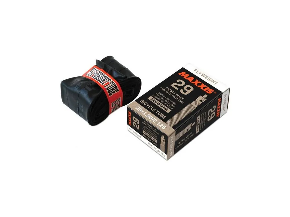 Nejlehčí duše v nabídce značky Maxxis s tlouškou stěny 0.45mm. Součástí balení je páska do ráfku.Galuskový ventilek. Hmotnost 105g.