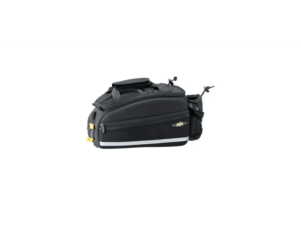 Brašna na zadní nosič se střední kapacitou. Prostor je dělen na jednu hlavní část a dvě boční kapsy na zip. Brašna kombinuje tvarově stálý materiál s pružnou a odolnou textilií Denier 600. Brašna je vhodná pro všechny nosiče Topeak se systémem MTX QuickTrack™.