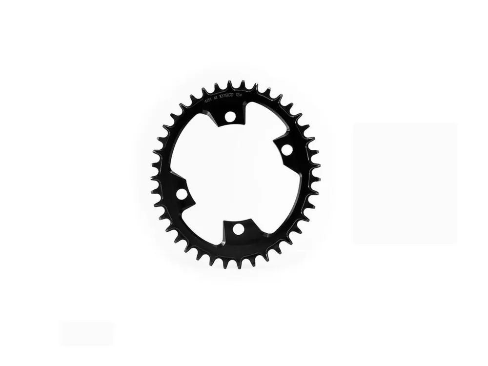 Převodník pro 1x systémy. Tvar a výška zubů bezpečně drží řetěz na převodníku v divočejším terénu. Tvarování a přesná šířka zubů se starají těsnější kontakt převodníku s řetězem a hladší spolupráci s řetězem při šlapání. Zkosené hrany zubů zabraňují temování nečistot a udržují systém čistší.